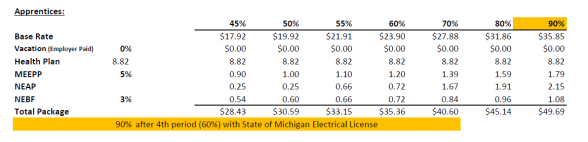 IBEW Local Union 275 members and the West Michigan Chapter of NECA have negotiated the above wage packages collectively. The members of IBEW Local 275 have decided to remove the vacation fund.